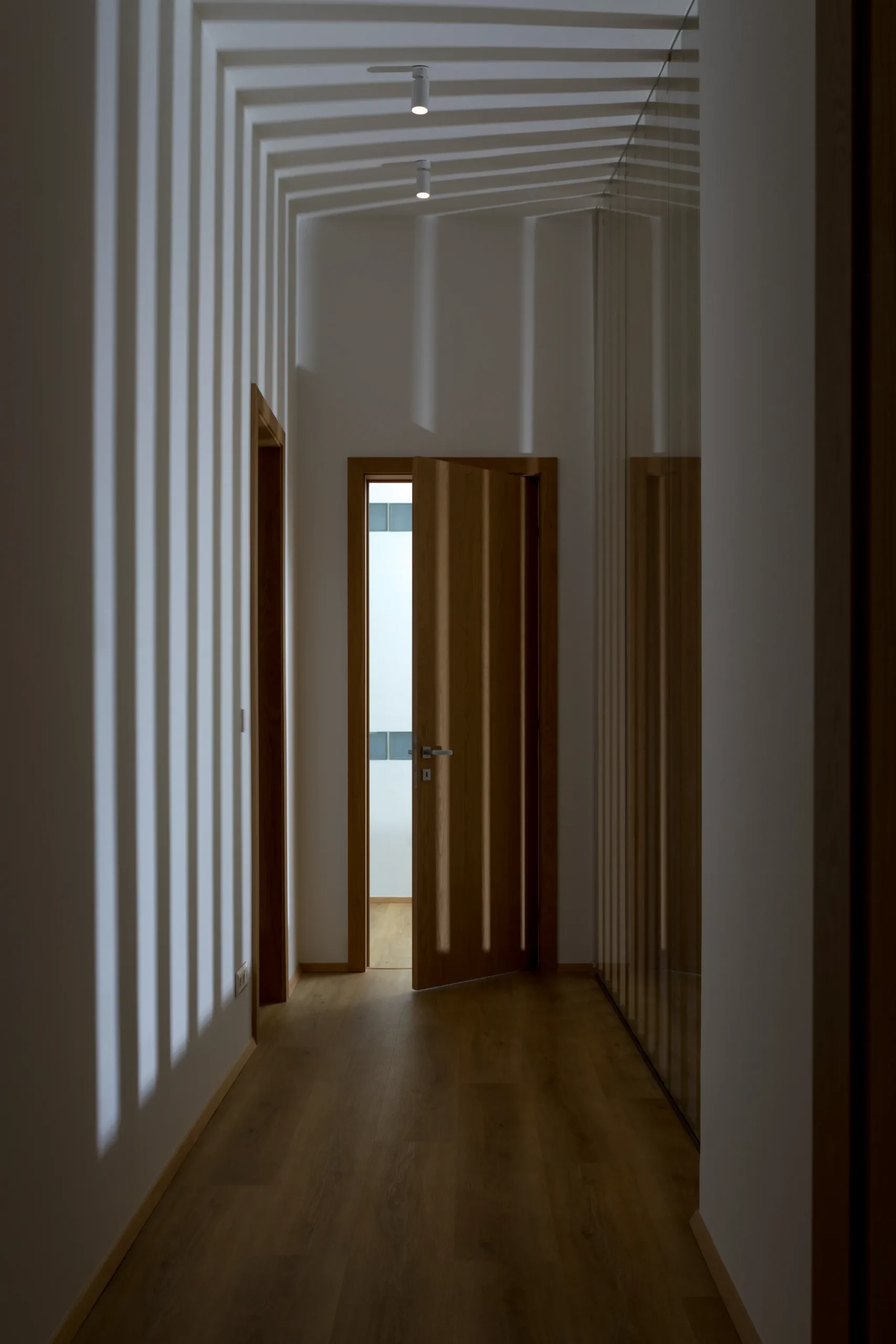 A megbízás egy modern családi ház teljes körű belsőépítészeti kialakítását célozta. A fő irányvonal a funkcionalizmus volt: a térszervezés és a tárolás maximalizálása anélkül, hogy a térérzet csökkenne. Nem pusztán bútorokat készítettünk, hanem építészeti léptékű beépítéseket, mint például az előszobai központi gardróbblokk. A feladat a különböző helyiségek, a konyhától a közlekedőkön át a hálóig, egységes, letisztult anyaghasználattal való vizuális összefűzése volt.